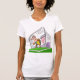 Este é um design de estilo de desenho animado divertido de um goleiro. Este goleiro tem um olhar cruel em seu rosto como ele está no gol do futebol. O engraçado é que ele está segurando uma rede para tentar parar as bolas, mas fracassou porque há várias bolas de futebol atrás dele. Este design de goleiro de desenho parece excelente nesta t-shirt feminina. Perfeito para si mesmo ou como presente