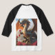 Camiseta Básica, Mangas Raglan 3/4, Branco/Preto, Adulto M