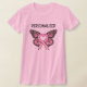 Os t-shirt cor-de-rosa personalizados da borboleta do coração da fita caracterizam nossa fita do coração do rosa da marca registrada em cor-de-rosa protegido e esboçada no rosa. Personalize este t-shirt para mostrar que o apoio de um amado com ganhou a luta ou atualmente a luta por dele. Ajude a aumentar a consciência do cancro da mama e a vestir esta camisa cor-de-rosa original da fita.