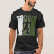Silhueta dinâmica de futebol sobre uma grande bola de futebol com texto ousado para verdadeiros amantes de futebol.