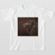 Design apresenta um retrato fotográfico de um cão com cabelo castanho sobre fundo castanho escuro.