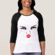 Camiseta feminina mangas raglan 3/4 da Bella+Canvas, Branco/Cor-de-rosa, Adulto P