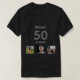 Para um aniversário de 50 anos (ou qualquer idade) como presente ou para a festa. Uma colagem de 3 fotos de seus amigos, família, interesse ou animais de estimação. Personalize e adicione seu nome, 50 anos e uma data. Data de nascimento ou data da festa de aniversário. Cinza e texto branco.