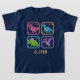 Esta t-shirt personalizada da era do fliperama dos anos 90 apresenta uma tela de seleção de caracteres de dinossauro ousada, com quatro silhuetas de dinossauros de pixel desajeitados. Cada dinossauro se posiciona em um quadro píxelado e aflita, completo com efeitos reluzentes para uma vibração nostálgica, retrorreflectora.