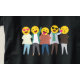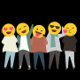 Um arranjo lúgubre de personagens que destaca uma expressão alegre.
