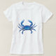 Um caranguejo azul de Nova Inglaterra neste grande design da camisa para o marisco e a vida marinha ventila pelo desenhista Carolyn McFann do estúdio de ronrom de dois gatos.