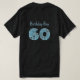 Um olhar atrevido que tem 60 anos (ou qualquer idade personalizada) na frente, acompanhado por um carro esportivo neon-look e anéis azuis brilhantes. Quando ele se vira, as costas têm um slogan personalizável de 'aniversariante' e qualquer idade que você queira entrar.