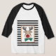 Camiseta Cartão de veado de Natal listrado branco preto cel