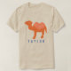 Adicione o seu próprio nome ou mensagem a esta camiseta gráfica de camelo para criar um presente ou guardar. Ele apresenta uma ilustração simples e em estilo de desenho de um camelo de bactriano ou de um camelo de dois pontos em laranja e seu nome ou mensagem em azul abaixo.