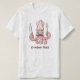 Cartoon de chef rosa com bigode segurando faca e garfo de cozinhar. Texto personalizado.