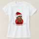 Camiseta feminina com ilustração de feliz sorriso de um homem afro-americano com o chapéu de Papai Noel; com modelo de texto editável; design de feriados de Natal com fundo vermelho