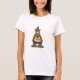 Urso marrom de desenho em pé nas costas com um pássaro vermelho na cabeça. Um design de desenho animado que diz que adoro pássaros nele com um coração vermelho. Este é um design de crianças excelente.