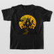 Imagem de Halloween em uma camiseta de uma casa assombrada e uma bruxa assustadora.