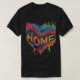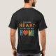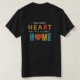 Um design de camiseta vibrante com o texto "Casa do coração" em um espectro de letras coloridas. O texto é ousado e ocupa o centro da camisa, criando um olhar visualmente impressionante.