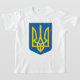 Casaco de armas ucranianas. Casaco de armas da Ucrânia. Menos Casaco de Armas da Ucrânia, o chamado Tryzub. Um símbolo tridente estilizado em ouro sobre um escudo de fundo de azul.