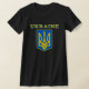 O casaco de armas do Estado da Ucrânia, normalmente conhecido como Tryzub. Este azul e ouro, Trident é o casaco nacional de armas da Ucrânia. A palavra Ucrânia está escrita sobre o escudo, também em azul e ouro, as cores da bandeira ucraniana.