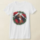 Esta ilustração festiva gerada por ai apresenta um casal preto vestido em roupas de Natal e chapéus de Papai Noel, o casal ambos tem terror. A imagem é dentro de uma coroa de Natal decorativa.