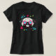 Pugnacious Gifts pug car crânio tem uma face branca com elementos decorativos rosa, verde e azul.