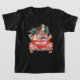 Camiseta Cat Riding Red Truck Árvore de Natal Cat Santa Hat