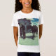 Camiseta com a pintura de óleo de Frederic Remington, O Viajante Belado (1906). Um cowboy bate em uma porta de cabine no meio de uma neve de inverno. Ele segura os reinos de um cavalo marrom ao seu lado. Um presente perfeito para amantes de cavalos e para o Velho Oeste.