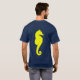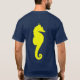 Forma simples ou silhueta de um cavalo marinho em amarelo contra fundo preto.