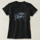 A característica desta camisa é uma imagem de arte estilizada de um cavalo árabe com mané e cauda fluidos em prata. A imagem é colocada sobre um fundo preto dramático. Se quiser adicionar texto, escolha "Personalizar".