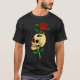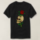 Uma imagem clássica de arte de tatuagem vintage de um crânio com o caule de uma rosa vermelha crescendo através dele.