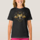 Composição de preto e ouro desenhada artificialmente, simétrica, asas de pássaros, ouro, crânio de pássaros decorado com padrão dourado sobre fundo escuro e texturizado.Estilo gótico