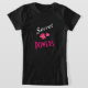 Camiseta infantil em preto com poderes secretos em rosa brilhante. Escolha qualquer cor de t-shirt e mude o texto para a sua própria mensagem. O texto e/ou as flores são removíveis.