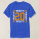 Esta vibrante t-shirt azul real ostenta uma exibição criativa do número "20", que celebra um marco ou um número significativo de uma forma única. O design alterna entre tons amarelos e brancos, dando ao número uma aparência de destaque que é ousada e lúdica. Essa camiseta é a escolha ideal para comemorar realizações pessoais, aniversários ou qualquer ocasião especial associada ao número 20.