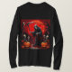 Uma representação assustadora da Morte em meio a abóboras, caveiras e árvores áridas sob o brilho de uma lua vermelha. Perfeito para temas de Halloween e representando noites de outono sinistras.