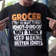 Engraçado Grocer Diz: "O Caçador Eu Tento Fazer Coisas Idiotas Provas Mas Eles Mantêm O Fazer Melhor Idiotas". Agarre este design do Engraçado Grocer como presentes engraçados para uma mãe, pai ou amigo espetacular.