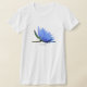 Chá de mulher branca com um bonito lírio de água azul. O lírio de água está aberto, e grande.