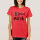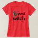 O chapéu de bruxa com tipografia de "boa bruxa" em letras negras adiciona um estilo assustador e divertido a esta camiseta que é excelente para entusiastas da fantasia e aqueles que adoram celebrar o Halloween.