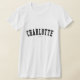 Verifique para fora este t-shirt de Charlotte! É você de Charlotte, North Carolina? Você tem um amigo ou um membro da família que amem Charlotte, North Carolina? Em caso afirmativo, este t-shirt da "bandeira" é exatamente o presente que você está procurando! As características de design "Charlotte" na rotulação preta arqueada na pia batismal clássica da faculdade.
