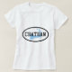 Chatham, Massachusetts é ficado situado no "cotovelo" de Cape Cod. É uma das cidades as mais populares das férias em Cape Cod, e igualmente um do mais cénicos. Ao sul, você pode olhar em cima do som de Nantucket ao longo das praias do southside. No lado oriental de Chatham, há praia do farol e luz de Chatham. Ao sul da ponta do sudeste de Chatham é a ilha de Monomoy, um ponto de parada popular para selos locais. As características deste design a cidade de Chatham, com a forma de Cape Cod no fundo no azul, cercaram por uma forma oval preta clássica. O excelente em t-shirt, em ímãs, em etiquetas e em camisolas, estes é a ideia perfeita do presente para residentes de Chatham!