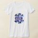 Esta camiseta feminina é mostrada com um impressão de cheerleader. Cores Azul Profundo e Branco Personalize este item ou comprar conforme projetado. Imagem licenciada