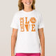 Cheerleaderes, camiseta Cheer Love. Cheerleaderes que adoram animar adorarão essa fantástica camiseta animada. Este cheerleader tem um tema Love com as palavras CHEER LOVE em letras grandes em laranja. Um pom de Cheerleader serve para a letra O e um megafone para a letra V, dando a esta camiseta líder de torcida um tema de alegria. Esta divertida camiseta Cheer Love faz um super presente para qualquer Cheerleader de qualquer idade, que apenas ama alegria. Mais camisetas de torcida e presentes de torcida disponíveis na loja.