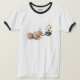 Um esquilo vestindo um chef que frita alguma comida numa frigideira de ferro fundido. Uma camisa divertida para quem adora cozinhar.