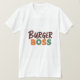Esta design ousada e brincalhona apresenta uma ilustração clássica de hambúrguer com um chapéu de chef e óculos de sol, dando-lhe uma vibração divertida e peculiar. O texto "Burger Boss" é exibido em uma fonte vibrante e atraente, fazer-o como a peça perfeita para amantes de hambúrguer.