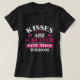 Abraçar o amor pela lógica com esta camiseta negra de mulheres, mostrando uma citação cor-de-rosa ousada sobre o poder dos beijos, adornada com estrelas lúdicas.