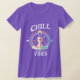 Mulher meditando gráfico com texto, "Chill Vibes" relaxante, sensação iluminada.