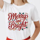 Camiseta Christmas merry and bright pink red modern font