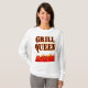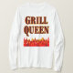 Churrasco engraçado da Rainha Grill dizendo em uma fonte flamejante ocidental para cozinheiros e cozinheiros. Com arte gráfica de chamas vermelhas e laranja no fundo do design. Outro original da MomsRetro.