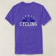 Um legal design de selo de uma bicicleta gráfica azul com estrelas e com as palavras: CYCLING, duas rodas são melhores que quatro...