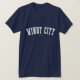 Verifique para fora este t-shirt ventoso da cidade! É você de Chicago, Illinois? Você tem um amigo ou um membro da família que amem Chicago, Illinois? Em caso afirmativo, este t-shirt da "bandeira" é exatamente o presente que você está procurando! As características de design "cidade ventosa" na rotulação branca arqueada na pia batismal clássica da faculdade.