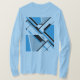 Um gráfico de abstrato, no estilo moderno do século Médio, é criado na combinação de formas geométricas em negrito em azul médio e cinzas com elementos pretos, com o design total inclinado na diagonal. Foto aqui em uma camiseta azul-clara, de manga longa, com outros estilos e cores disponíveis para escolher, a design projeta uma qualidade artística espantosa, moderística e ousada para uma adição versátil e moderna ao seu visto casual e diário (seja em casa, socializando com amigos, jogando esportes ou correndo sobre a cidade). A design de camisa como "arte 'vestível'" também expressa um sentido de seu estilo individualizado, contribuindo para o sentimento de ser "unido" e criativo em suas escolhas pessoais de guarda-roupa.