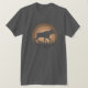 Esta é uma bela e simples camiseta retrô para o amante da vida selvagem em sua vida. Esta camisa unisexa de algodão mole faria um presente de excelente aniversário para uma pessoa que ama o exterior, observando animais selvagens e acampar. O pôr do sol monocromático colorido de pêssego está no fundo, e a silhueta do alce e da alça está no primeiro plano. O gráfico tem uma camada de meio tom para lhe dar um aspecto mais mudo e bem vestido.