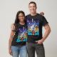 Uma t-shirt com uma cena de circo num fundo azul