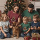 "This absolutely endearing illustration features a detailed portrait of a beautiful Cocker Spaniel dog with its characteristic golden coat and long, wavy ears. The dog is given a festive holiday twist with reindeer antlers adorned with small golden bells. Two beautifully wrapped Christmas presents with red ribbons sit prominently on either side. This high-quality graphic is ideal for personalized holiday gifts for Spaniel owners, Christmas cards, apparel, ornaments, or any product celebrating this joyful and affectionate dog breed."